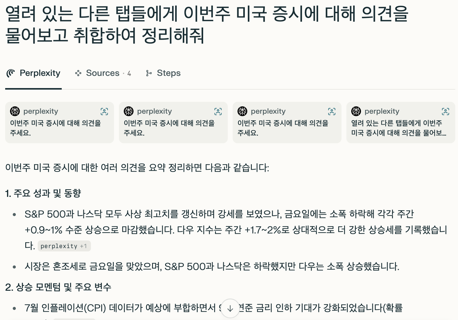 - 기본 검색엔진이 Perplexity로 설정되어 자연어 질문에 대해 즉시 요약형 답변과 출처를 제공, 검색-클릭-탐색 흐름을 대화형으로 전환한다.b2b.spartacodingclub+4