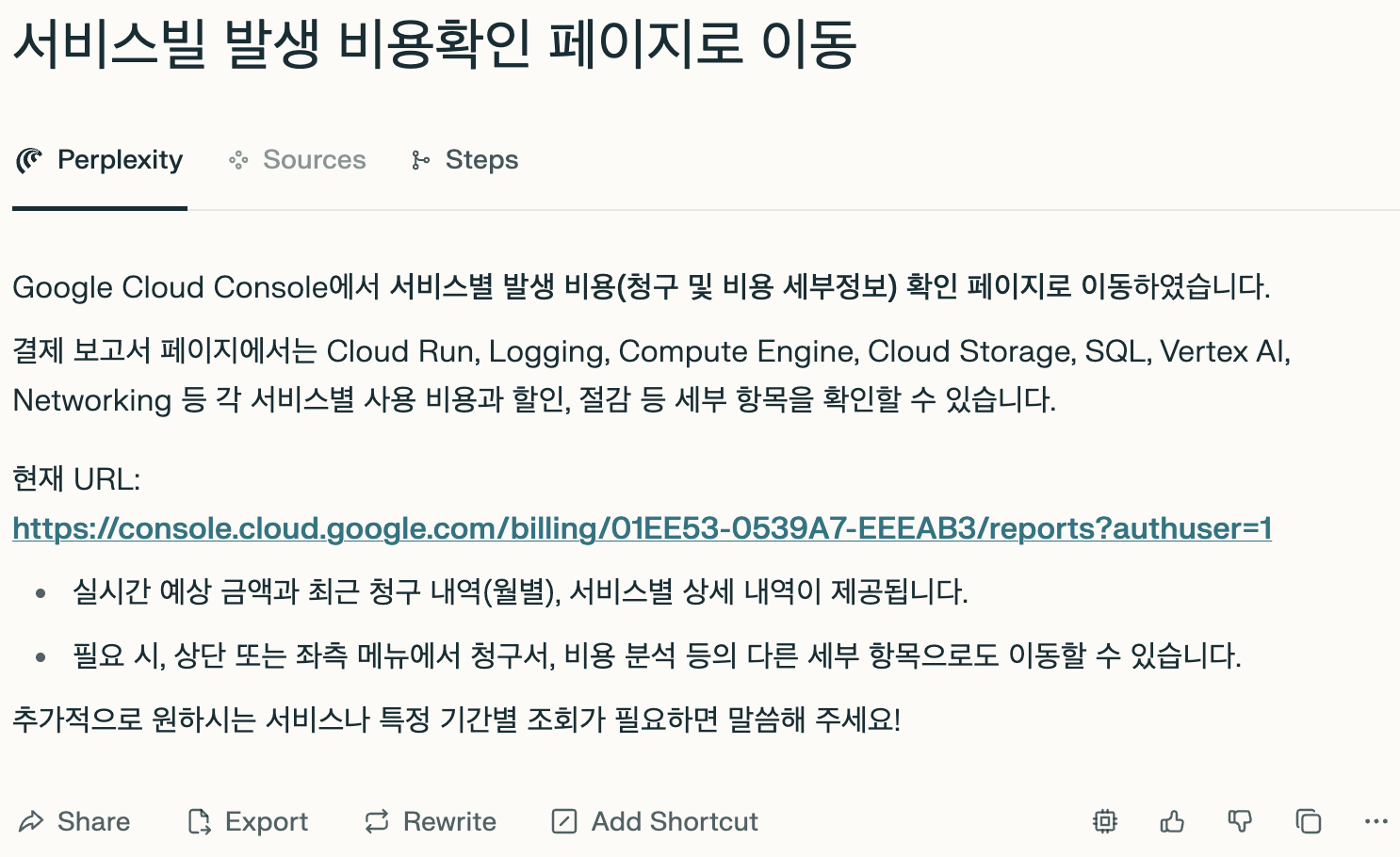 2. 웹 사이트에서 사용법을 잘 모를 경우(예, 클라우드) 요청하면 실제 화면으로 이동과 클릭을 자동으로 진행한다. (단 모든 사이트에서 지원하지는 않음)