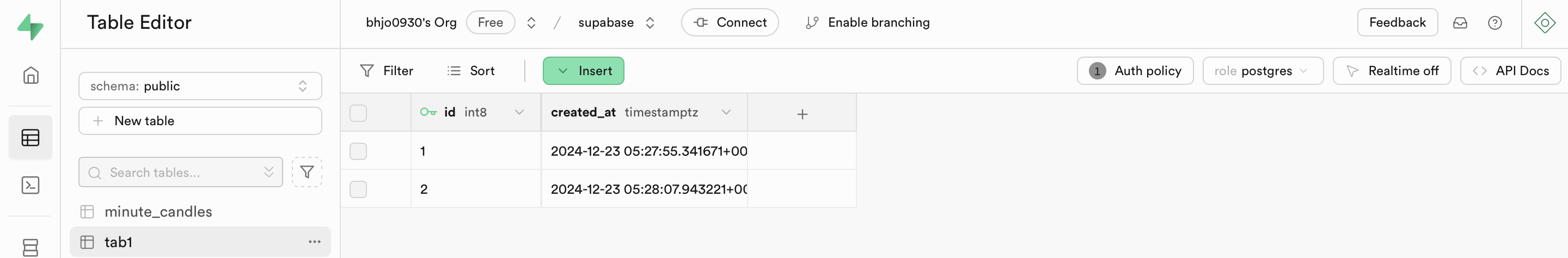Endpoint to fetch data from tab1 table in Supabase.