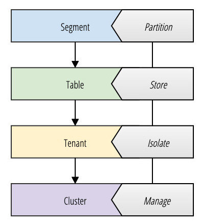 Pinot uses a variety of terms that can refer to either abstractions that model the storage of data or infrastructure components that drive the functionality of the system.