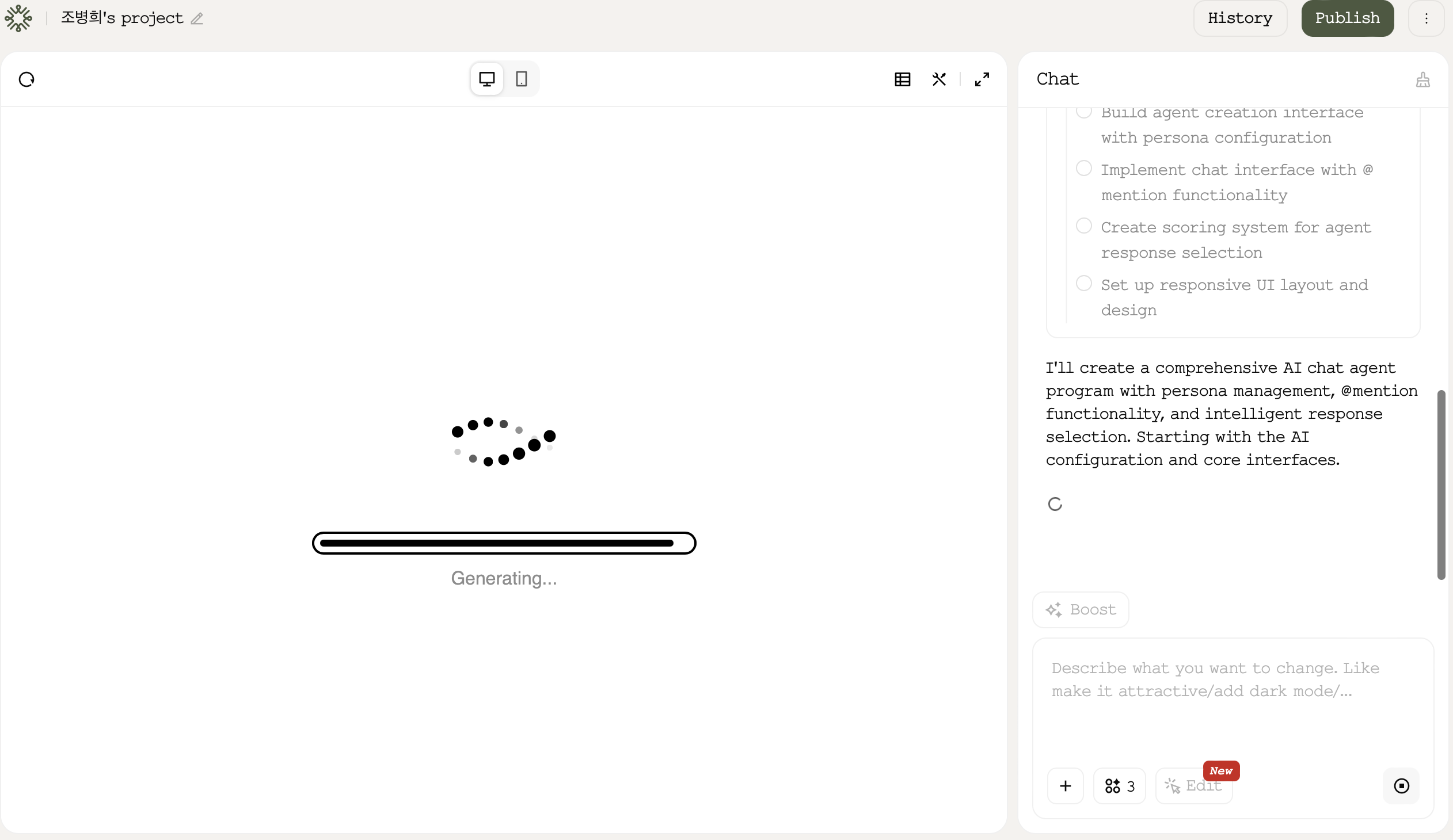 - 다국어 지원 및 수정 용이성: 중국어로 된 웹사이트를 영어로 번역하는 것처럼, 간단한 요청만으로 프로젝트 내용을 수정하거나 번역할 수 있습니다.
